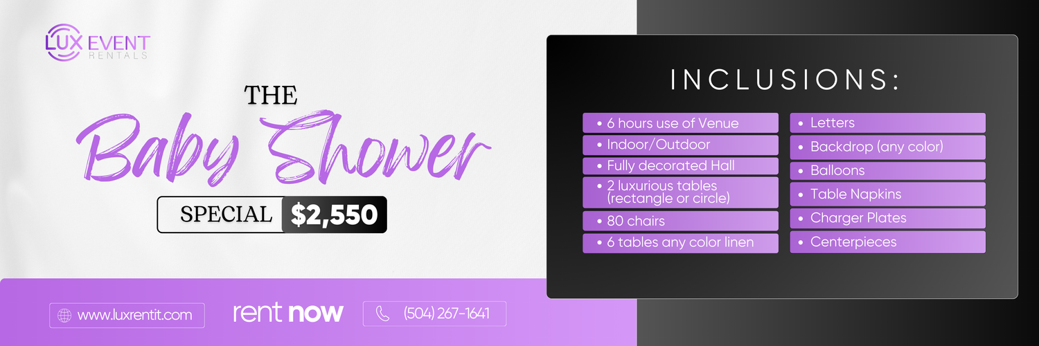 Lux Event Rentals, LLC is a high-end event rental company located in New Orleans, Louisiana. Our rental services are available in New Orleans and the surrounding areas up to 3 hrs out.