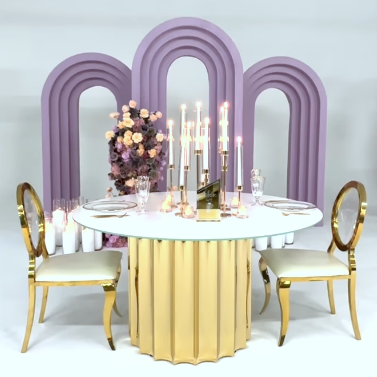 Daliah Round Table is an elegant round dining table that has a luxurious design. It is the perfect table for your VIP guests, a dessert display, or even a place card table.