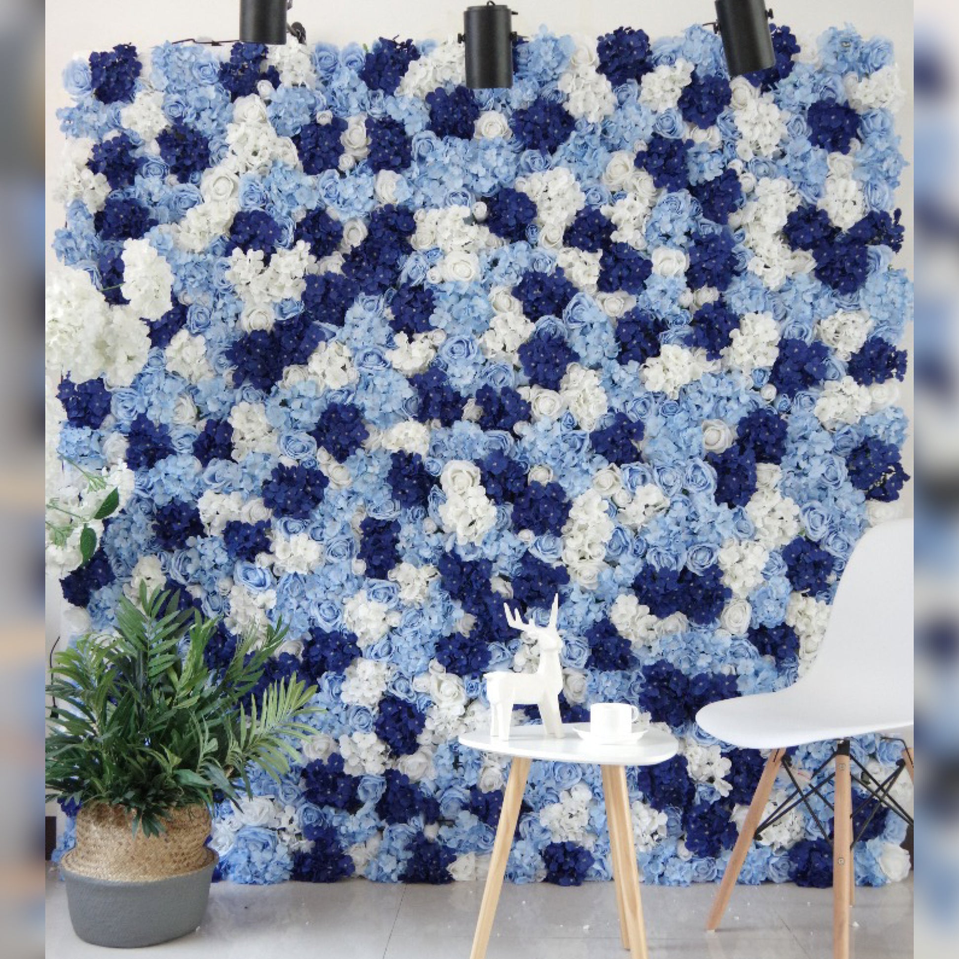 The Flower Wall (Pop of Blues) is a stand-alone backdrop that is sure to be a perfect spot for photo opting for your event!
