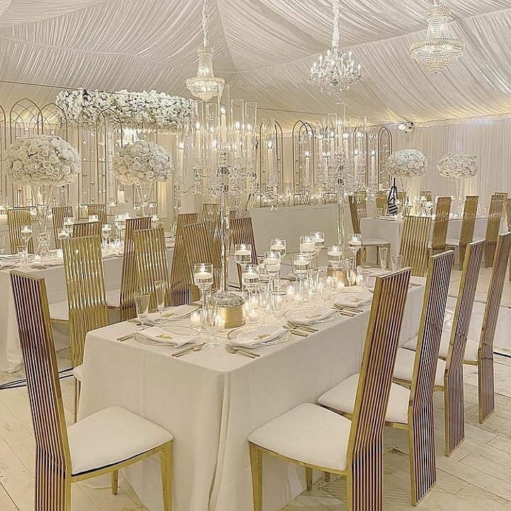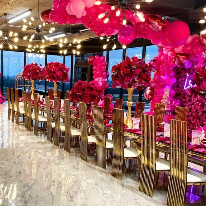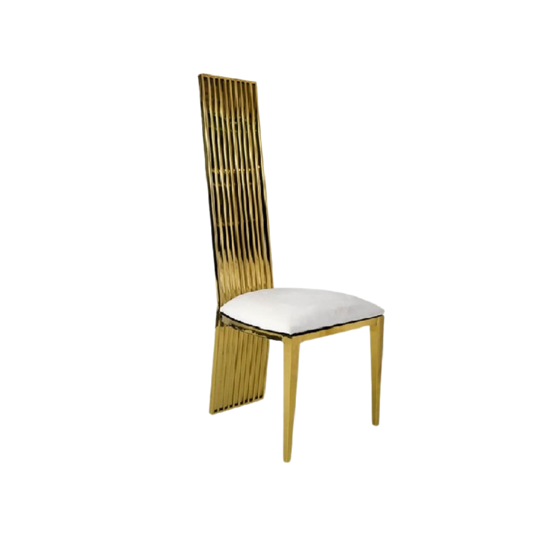 Our High Back Gold Chair has a modern look and sleek design that will make your party setup look more luxurious and elegant.