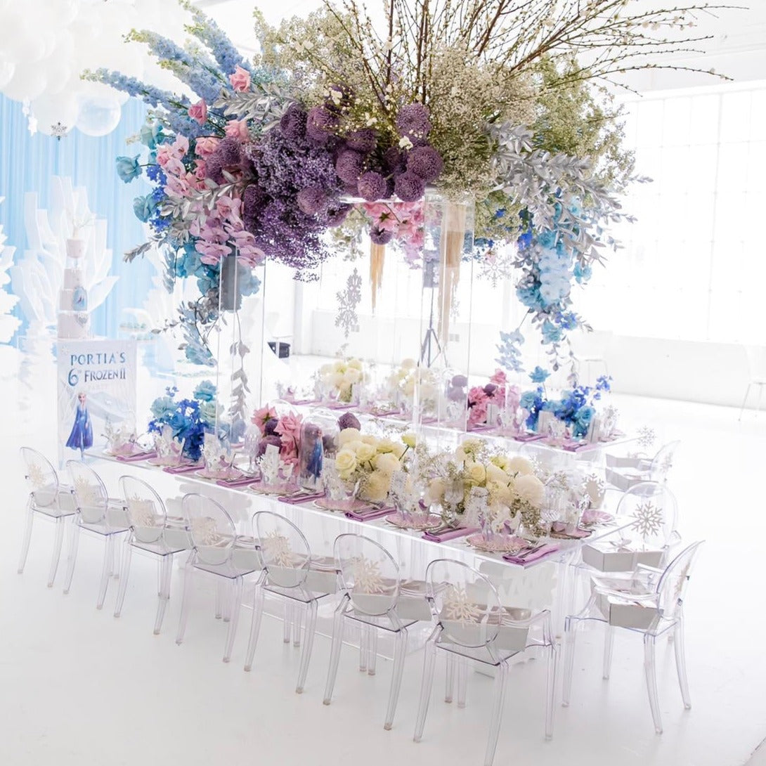 With its crisp shine and clear look, this Kids Ghost Chair transforms a traditional chair style into a sleek, modern statement that your children will like to be seated during their party.