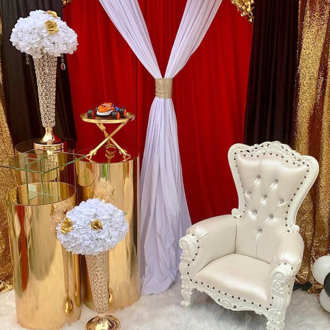 Make your child feel like the Princess or Prince at your upcoming event with the Kids Throne Chair. This chair has a leatherette fabric and diamond buttons which really makes it stand out once set up on any occasion. This is available in different colors.