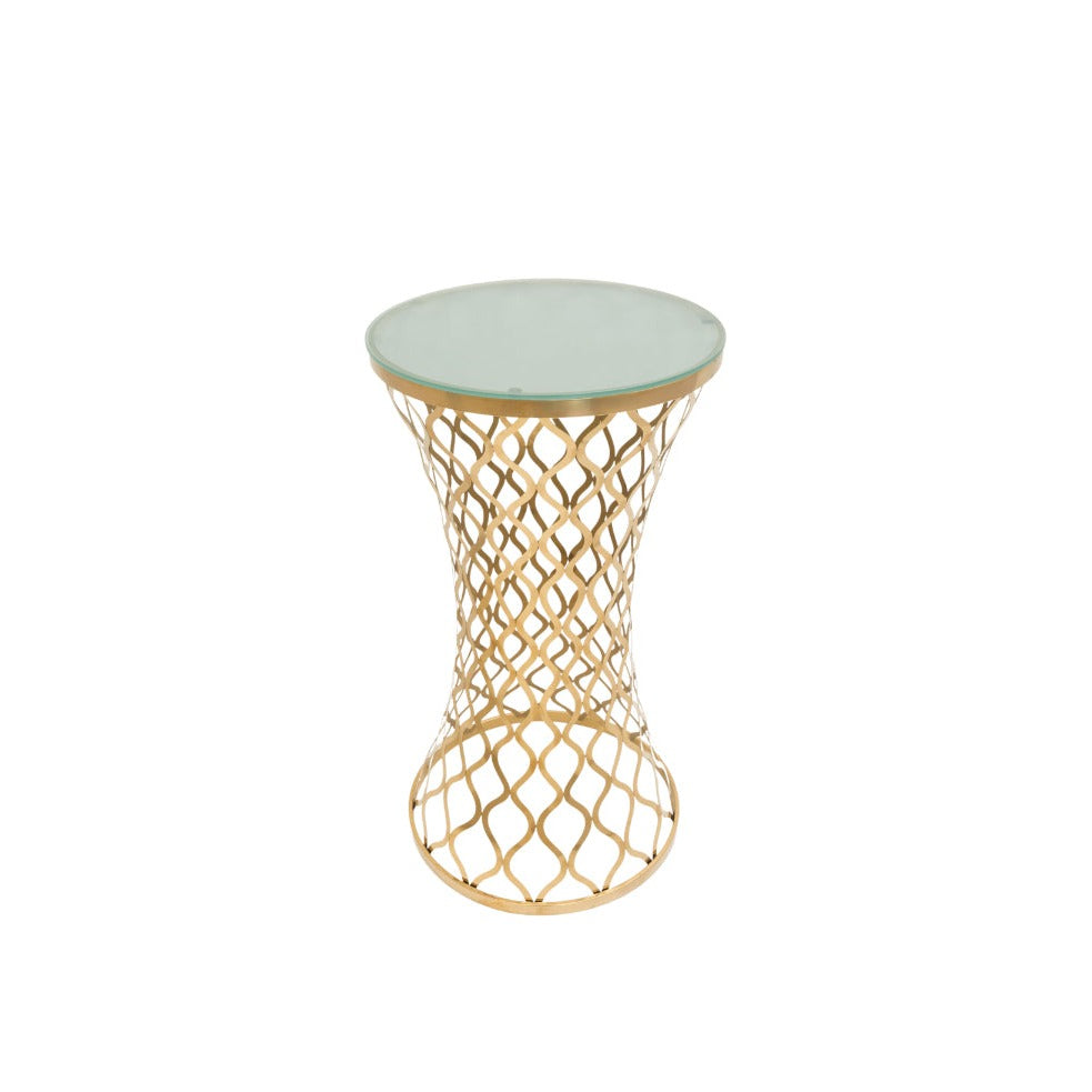 This gold Trixie Bar Table with a round glass top is a great addition to your cocktail party setup. Match it perfectly with any bar stool for your event.